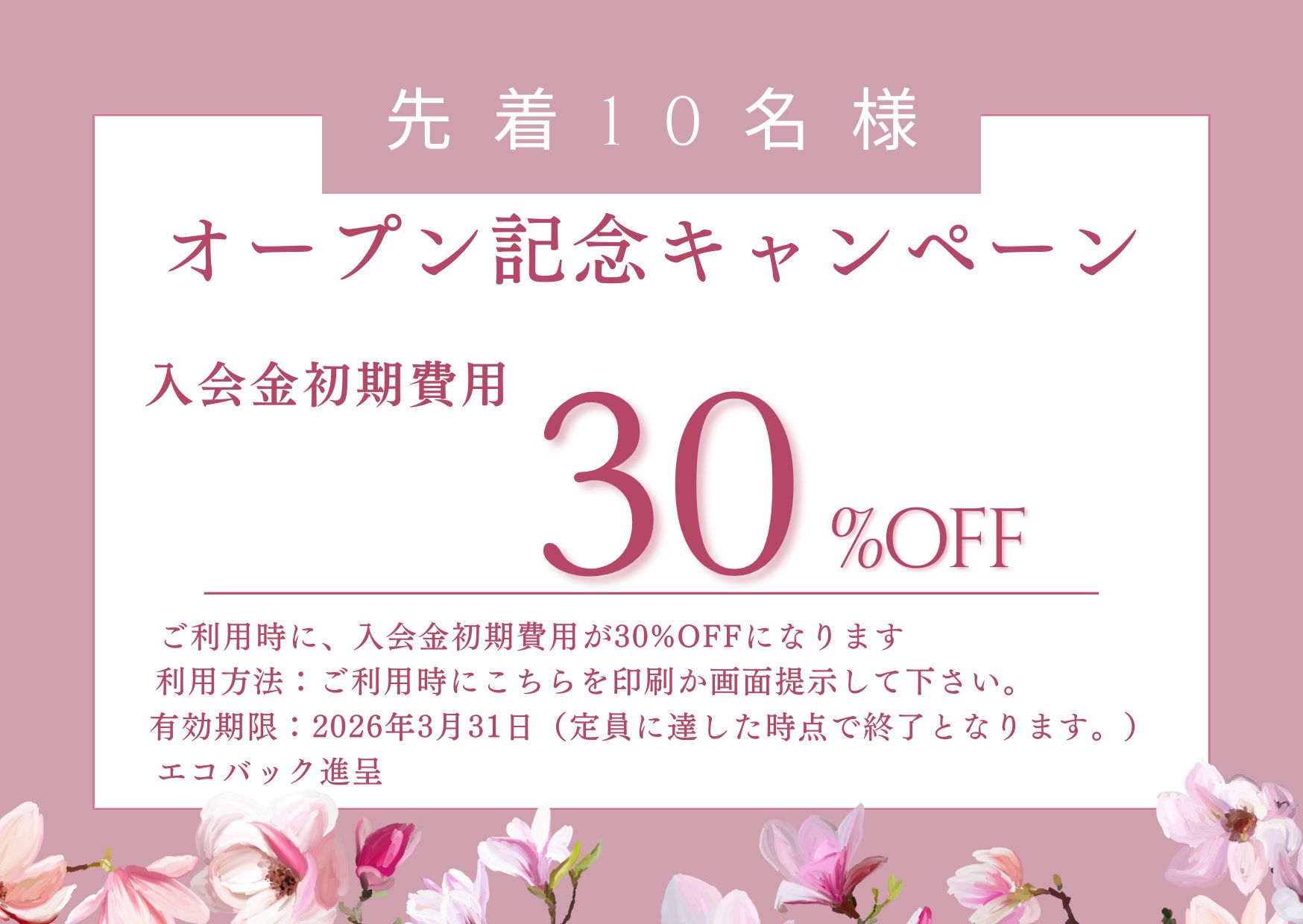 「オープン記念キャンペーン」入会金3...